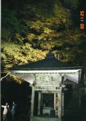 濃い目の、コーヒー(ホット)と、コーヒーで作った氷が入ったグラスが出される。 そしてこのコーヒー氷入りのグラスにホットコーヒーを注いで、それが冷めてアイスコーヒーになるのを待って飲む。 ともは、こんなアイスコーヒー初めて見た(笑) 次に、谷汲へ向う・・・しかし温泉ではなく、横蔵寺へ向かった。 すでに、5時近くになっており、あたりは薄暗くなったいたが、ここの紅葉がライトアップされていて、とても奇麗だった。 暗闇の中に、明るく浮かぶ紅葉は、幻想的で、とも何枚も写真撮る。