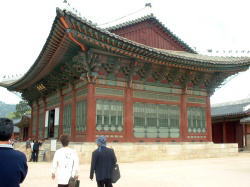 李王朝の栄華を伝える「勤政殿」や「慶会楼」などの華やかな建物を見学し、さらに奥の「香遠亭」まで足を運んだ。この奥に、1895年に日本の暴漢によって虐殺された明成皇后の退避場所があった。ここには、ほとんど観光客の姿は無く、景福宮の中とは思えないほどの静けさだった。 「明成皇后遇難之地」記念碑が、ぽつんと建てられており、ここにも日本侵略の重い歴史があることを知った。