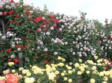 会場内には、いろいろな種類のバラが咲いており、まさにバラ一色である。バラは赤ばかりと思っていたともまるはビックリ! 最近流行の画像掲示板に投稿する写真をいっぱい撮った。
