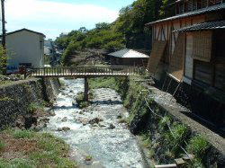 午後12時25分に、瑞穂蔵を出発し、大丸温泉旅館へ向かう。いったん宿の前の道へ入るが、駐車場がないことがわかりバックして、公共駐車場へ止める。 大丸温泉旅館は、標高約1300mに位置し、旅館のわきを流れる川を堰き止めて造った全長約100mの露天風呂が人気。上流が女性専用・下が混浴となっている。連休中のせいか、入浴客が多かった。女性は、水着・綿シャツ・バスタオルだった。 また館内には飲泉処もある。 お湯は、鹿の湯ほど、硫黄臭は強くないが、軟らかく気持ちよかった。