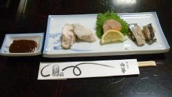 まず水戸から少し離れた大洗町の「潮騒の湯」へ、午後5時10分に到着。 ここは、土日祭日の入浴料金が大人1300円であるが、サービス月間のためということで、1000円であった。 ここは、露天風呂から太平洋を見下ろすことができる。 潮騒の湯 入り口 ゆっくり温泉に温まり、今度は同じ大洗町の「ゆっくら健康館」へ行く。こちらは、町営の日帰り温泉施設である。 距離的には先ほどの「潮騒の湯」と近いのであるが、泉質的には異なっており、どら&ともは、「ゆっくら健康館」のお湯の方がお奨め。 午後6時20分に出発し、再び水戸市内へ向かう。茨城の代表的な味覚・アンコウを食べるためである。午後7時に、水戸市内の駐車場に車を預け、歩いて「山翠本店」に行く。 店内は混んでおり、順番待ちをする。暫くして、一番奥の座敷に案内される。 『あんこう鍋』『あんこうのとも酢』を頼んだ。