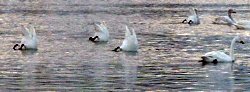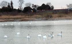 岩魚の塩焼きは、とても軟らかく、ちょうど良い塩味。鯉のあらいは、鯉の生臭さが無く、酢味噌とマッチしてさっぱりしている。 茶碗蒸しは、とても大きな器で、キノコ・三つ葉・銀杏などが入っており、美味しかった。 食事を済ませた後は、温泉に入る。ここは、内風呂のみであるが、良いお湯で温まった。 午後2時半に「黒山鉱泉館」を出発し帰路につく。途中、川本町の荒川に「白鳥の飛来地」があることを思い出し、立ち寄ってみる。