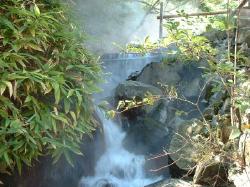 | 那須高原有料道路のロープウェイ乗り場近くにある大丸温泉旅館。 ここは、宿の側を流れる白土川を区切り作った野天風呂がお勧め。まさに川の温泉であり、せせらぎを聞きながら入る露天風呂は最高! その一つ「白樺の湯」は混浴であるが、女性もバスタオルを巻いて入っていた。下は小石が敷いてあり、歩くと足の裏が気持ちいい。もちろん女性専用の野天風呂もある。 お湯は、まさに循環無しのかけ流しというか、川の流れの湯(笑)で、軟らかくて、湯上りもさっぱりしてとても気持ちいい。 宿内には、源泉直接引湯の飲泉処もある。 どら&とも、大満足の温泉! (2001.9.22) |