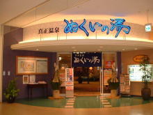 午前10時に喫茶店を出て、約5分程度で、真正温泉「ぬくいの湯」へ到着する。 この温泉は、リバーサイドモールという建物の中にある。 たまたま、大晦日ということで、通常1000円の入泉料が500円だった(^-^)/