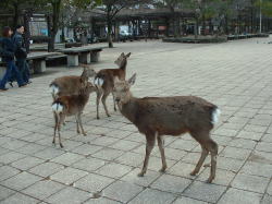![]() 宮島へ着くと、鹿が沢山いて、とても人懐っこく、かわいい。 厳島神社を回り、いろいろ写真を撮る。 写真を撮っている時に、どらの持っていた雑誌を突然、鹿がかじって食べてしまいビックリ!(表紙が無くなってしまった(笑))