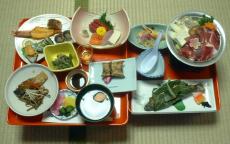 露天風呂へは、急な長い階段を下りていく。男女別の更衣室があり、浴衣を脱いで露天風呂へ・・・ 露天風呂は4つあり、どのお風呂も目の前を流れる鹿股川に手が届きそうなくらいである。湯船ごとに微妙に温度が異なるが、お湯はうすい白色でとても気持ちがよい。 ちょうど他に誰も入っていなかったので、どら&とも・・・4つの露天風呂に順番に入り堪能する。 露天風呂を楽しみ、再び長い階段を上っていくと、途中の扉から出てくる人がいて、貸切露天風呂があることを知る。これは早速入らなくては・・・とフロントへ行き、申し込みをしたが、前に3組の予約が入っていたので、順番がきたら連絡をもらうことにして、いったん部屋に戻る。 4時過ぎに部屋に戻り、ともまるは旅行記を書き始める。どらちゃんは、湯疲れからか寝てしまう(笑) 5時過ぎにやっと、順番がきたと連絡があり、さっそくフロントへ行き、鍵を受け取って貸切露天風呂へ行く。2つの露天風呂があり、奥のほうのお風呂へ入る。先ほどの混浴露天風呂より、小さい湯船であるが、川を見下ろすことができ景色は抜群。 前に入った人が、水を入れたままにしてあったので、何でかなと思い水を止めたら、湧き出してくる温泉が思いのほか熱く、あわてて水を入れる。 こちらもとても気持ちよいお湯で、色はほとんど無色であった。外の風は冷たかったが温泉でほてった体には心地よい。 貸切露天風呂 5時30分過ぎに部屋に戻る。 6時に食事を食べる。食事はお膳で部屋まで運んでくれる。お膳で食べるのは、どら&とも初めてである。 食事は、岩魚にホウバ味噌を入れた唐揚げ、ボタン鍋、お刺身、山菜などであった。とも・・・ビール、どらちゃん・・・冷酒を飲みながらゆっくり食事する。 お腹も膨れて休憩し、再び露天風呂へ向かう。途中の長い階段では、舞った雪が屋根に積もりうっすらと雪化粧をしていた。 風はさすがに冷たくなってきていたが、露天風呂でいろいろ話をしながらゆっくり入る。夜空を眺めながら入る露天風呂もこれまた最高! (露天風呂の一つに、洞窟風呂になっているところがあり、そこには女性は入りやすい。男性たちは、近くの湯槽に入り、そこまで来ないので・・・ほんと!見知らぬ男性が入ってきても、ゆ〜っくり露天風呂を堪能する事ができました。どら談) 露天風呂を出て、長い階段を上る途中で椅子があり、ひと休み(笑)さすがに上りは疲れる。 その後大浴場(内風呂)へ入り体を洗い、部屋に戻る。 どらちゃんは、そのままダウン・・・ 那須塩原の温泉は、どこも期待を裏切るところはなく、お勧めの温泉郷である。