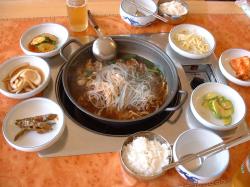 園内には壬辰の乱の英雄・李舜臣将軍の銅像があった。釜山タワーは120mの高さで、その展望台からは、釜山の街を一望することができ、高層ビルが多く立ち並び、大きな港町であることが良くわかった。 午後6時に、「釜山観光ホテル」に到着した。ちょっとひと休みをして、夕食を食べに午後6時45分に出かけた。歩いて5分ほどのお店「エデン栄養センター」で、サンゲタンとヨンゲグイ(若鶏のからあげ)を頼んだ。 サンゲタンは、昨年も食べたが、とってもコクのあるスープがなんともいえず美味しかった。ヨンゲグイは、思ったより脂っこくなくて、香ばしかった。 ここのキムチはそれほど辛くなくて、食べやすかったのであるが、シシトウは、とっても辛くって、ともまる・・・あまりの辛さに涙を流しながら食べた(笑)