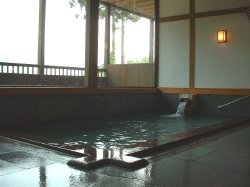 内湯であるが、屋根が高く、窓が大きいので、とても開放感がある。
