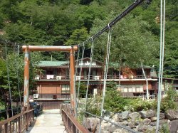 蒲田川に架かる専用の吊り橋「かじか橋」を渡ると、木造の風情のある一軒宿があり、ここが深山荘。